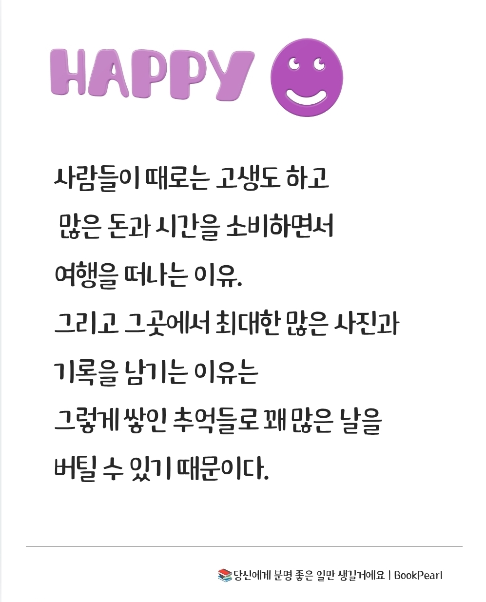 사람들이 때로는 고생도 하고 많은 돈과 시간을 소비하면서 여행을 떠나는 이유. 그리고 그곳에서 최대한 많은 사진과 기록을 남기는 이유는 그렇게 쌓인 추억들로 꽤 많은 날을 버틸 수 있기 때문이다. 54