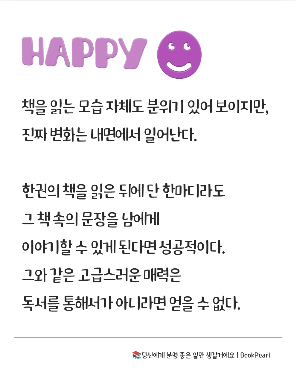 책을 읽는 모습 자체도 분위기 있어 보이지만, 진짜 변화는 내면에서 일어난다. 한권의 책을 읽은 뒤에 단 한마디라도 그 책 속의 문장을 남에게 이야기할 수 있게 된다면 성공적이다. 그와 같은 고급스러운 매력은 독서를 통해서가 아니라면 얻을 수 없다. 66