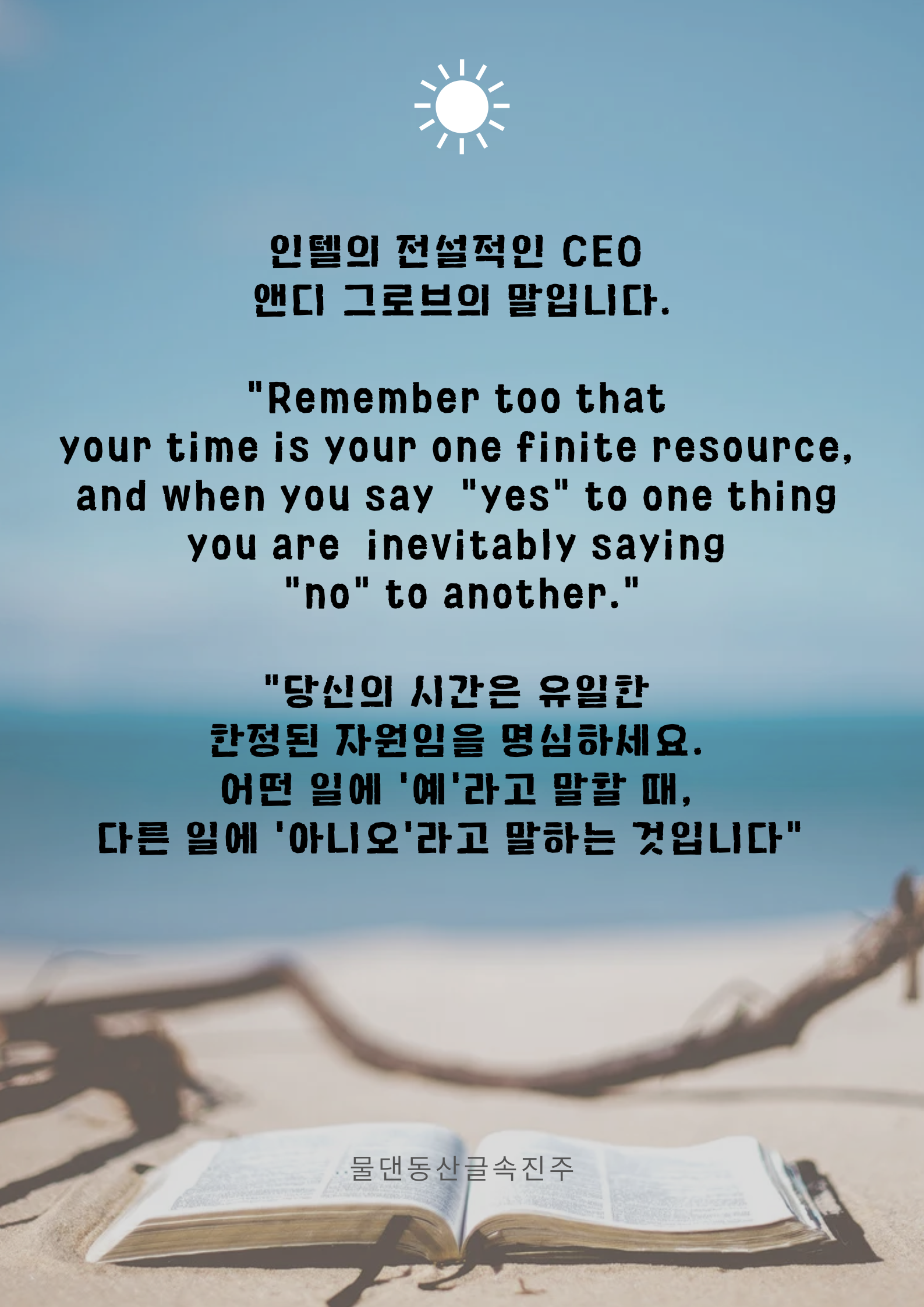 "당신의 시간은 유일한 한정된 자원임을 명심하세요. 어떤 일에 '예'라고 말할 때,