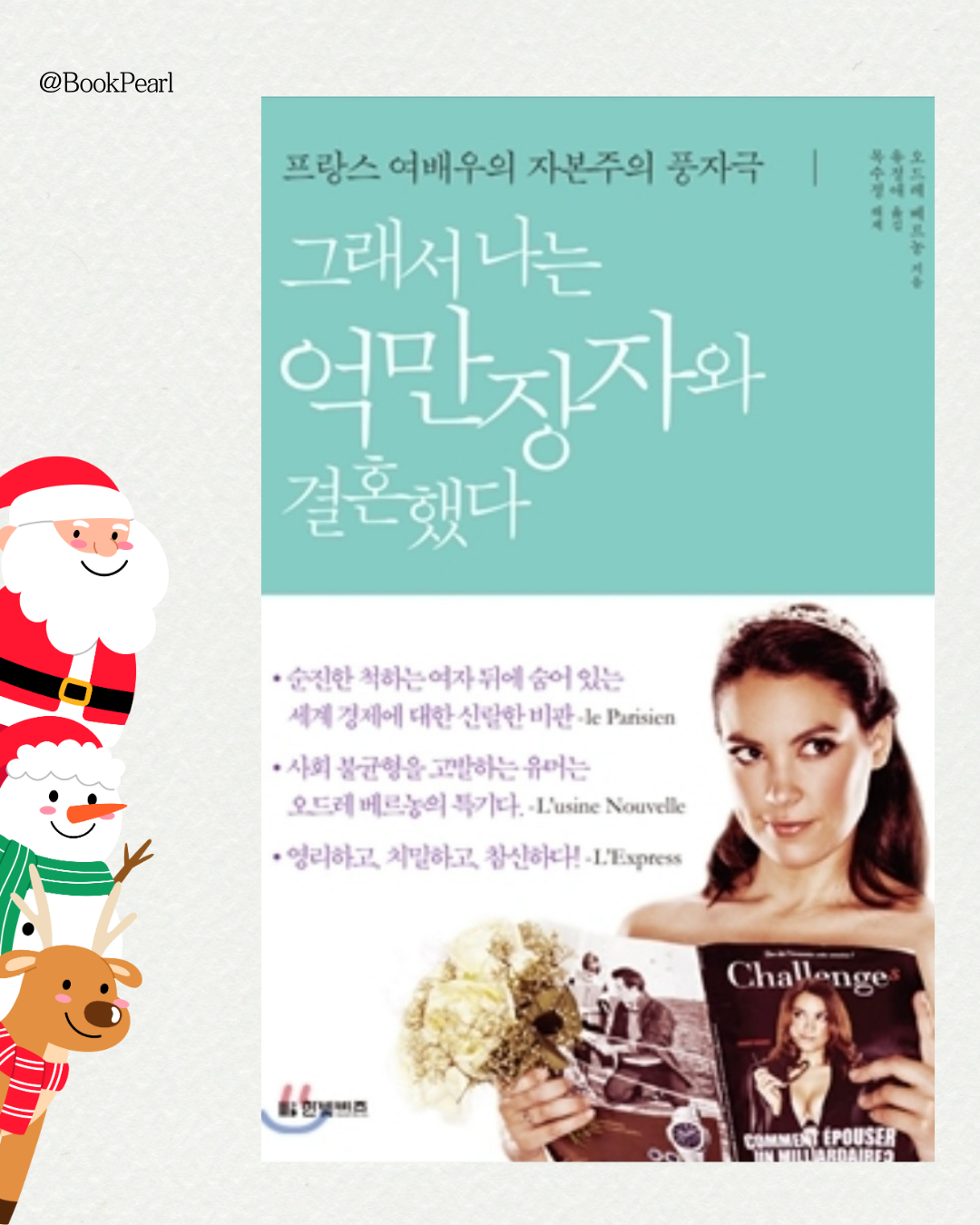 이 책은 프랑스의 유명 원맨쇼 '억만장자와 결혼하는 법'을 책으로 옮긴 것이라고 한다. 프랑스 사회를 강타했던 한 여배우의 자본주의 풍자극!! 조롱하고, 폭로하고, 공격하라!! 오래전 어느 지인께서 추천해 주셨던 책인데 이제야 읽어보게 된다.