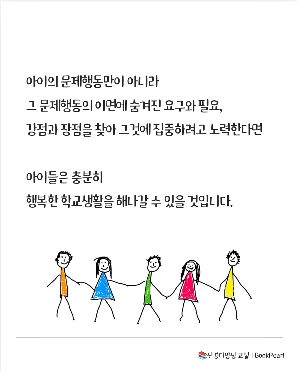 아이의 문제행동만이 아니라 그 문제행동의 이면에 숨겨진 요구와 필요, 강점과 장점을 찾아 그것에 집중하려고 노력한다면 아이들은 충분히 행복한 학교생활을 해나갈 수 있을 것입니다. 205