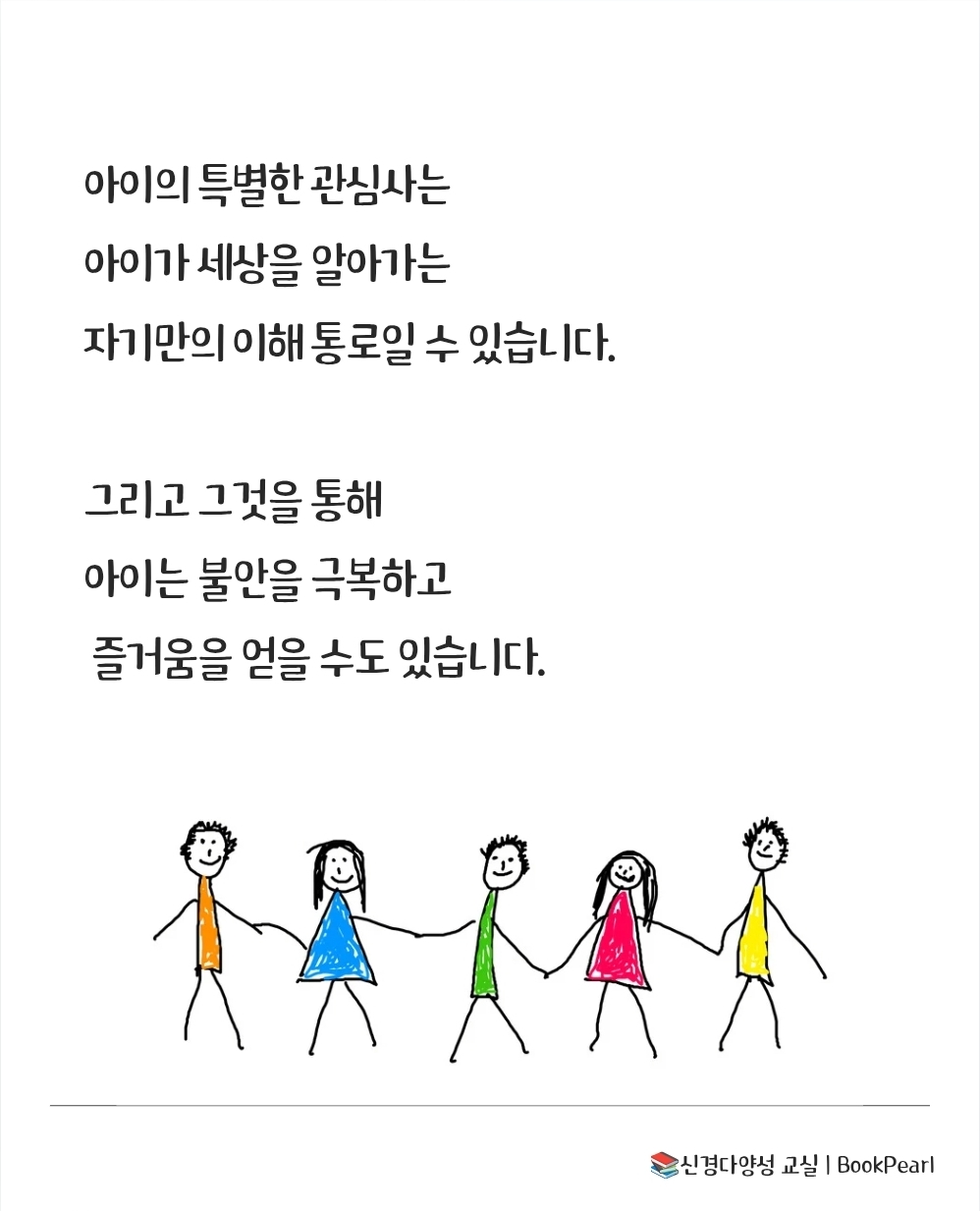 장애는 인간이 가진 여러 가지 다양성 중에 하나일 뿐입니다. 우리가 생물학적 다양성과 문화적 다양성, 인종 적 다양성을 당연하게 받아들이듯이 다양성 존중 교육을 통해 뇌의 신경학적 다양성까지도 있는 그대로 받아들일 수 있습니다. 다양성은 자연의 섭리이고 더 나은 사회로 발전하기 위한 필수요건이기도 합니다. 277
