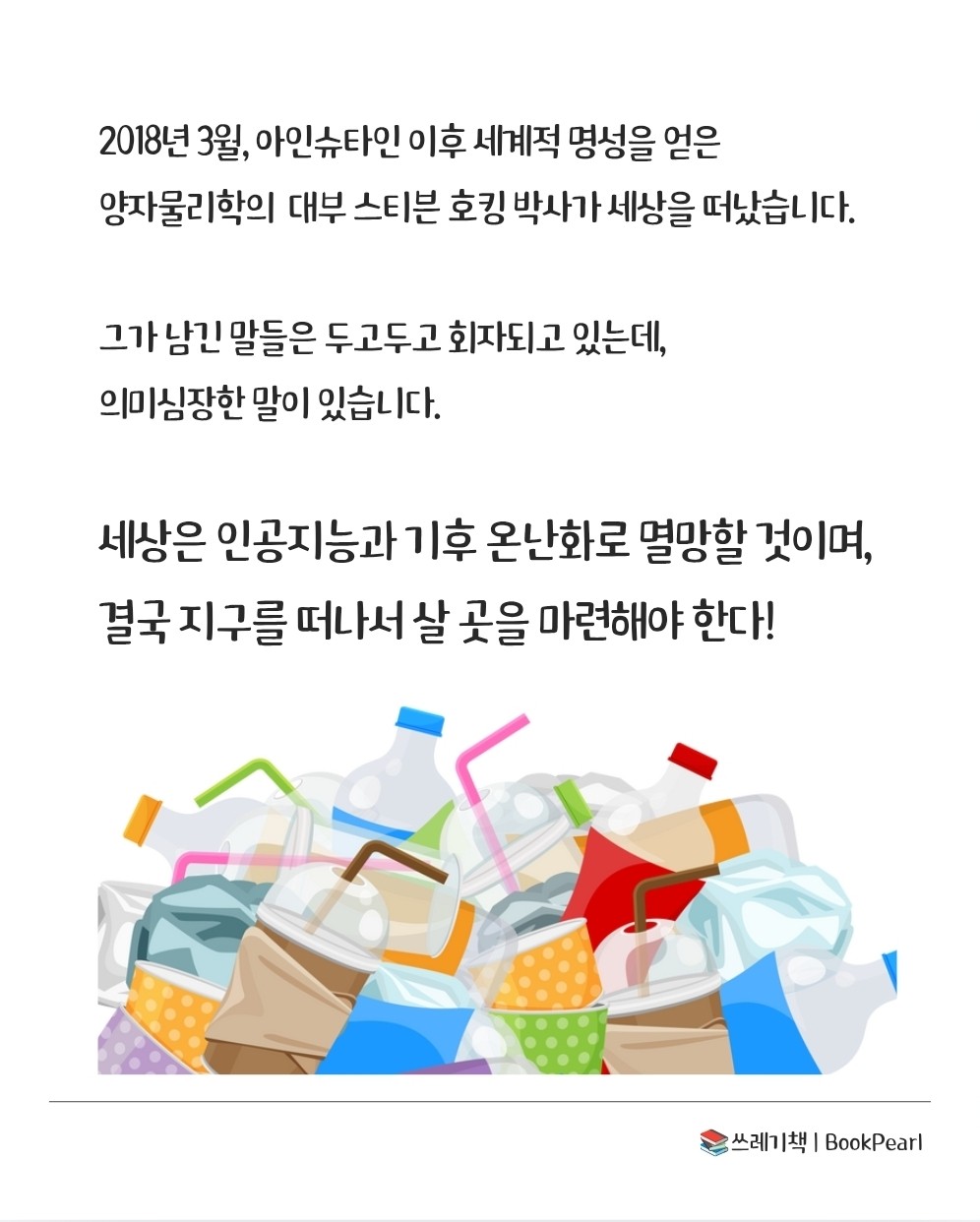 2018년 3월, 아인슈타인 이후 세계적 명성을 얻은 양자물리학의 대부 스티븐 호킹 박사가 세상을 떠났습니다. 그가 남긴 말들은 두고두고 회자되고 있는데,. 의미심장한 말이 있습니다. 세상은 인공지능과 기후 온난화로 멸망할 것이며, 결국 지구를 떠나서 살 곳을 마련해야 한다는 것이었죠. 219