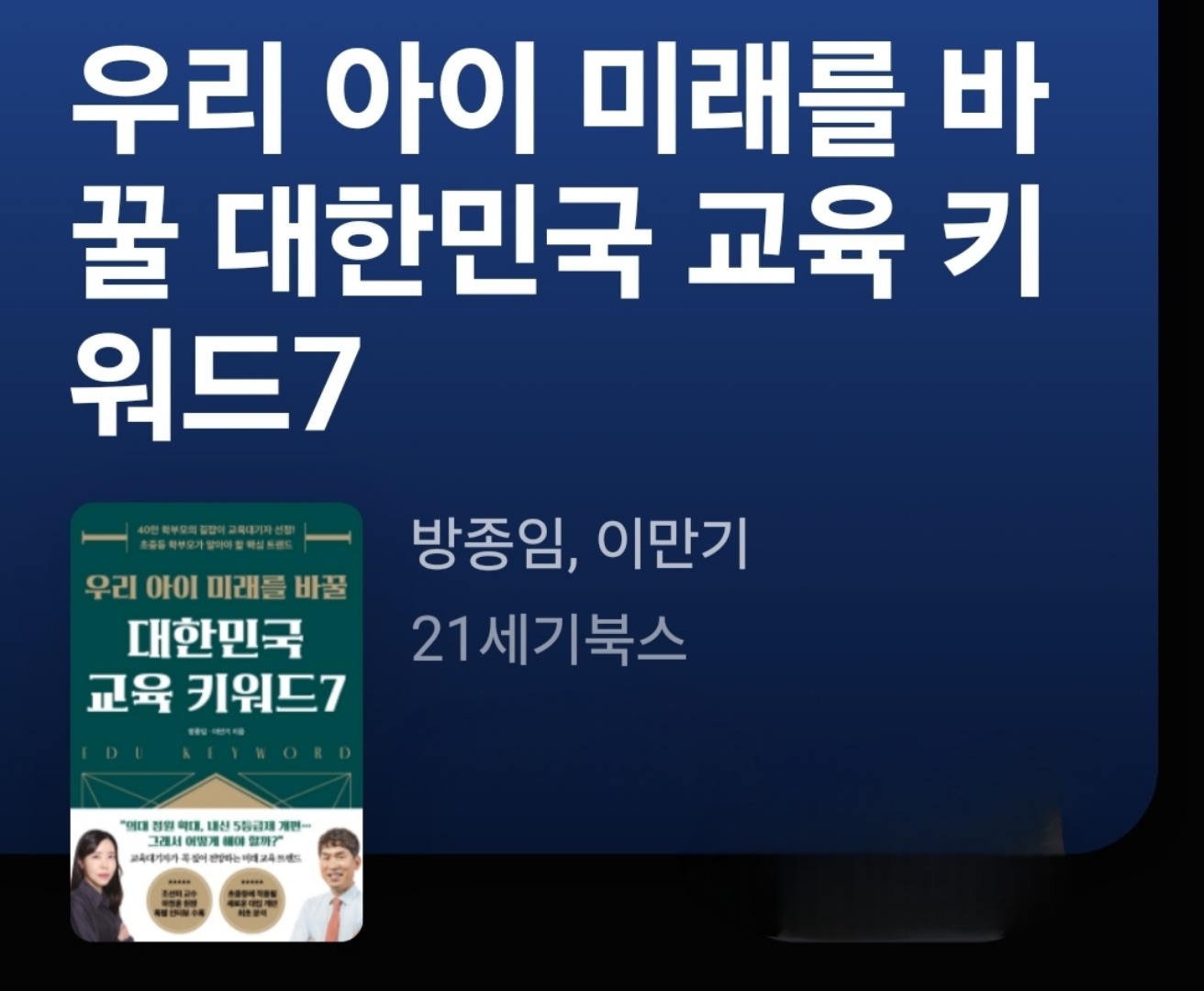📚우리 아이 미래를 바꿀 대한민국 교육 키워드7 | 방종임, 이만기 | 21세기북스(2023)