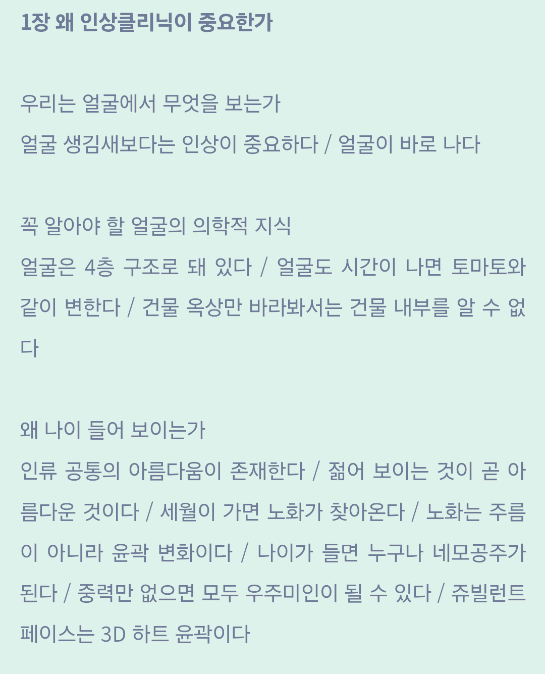 인상은 긴 세월 동안에 누적되어 만들어지는 표정습관의 결과물이다(153)